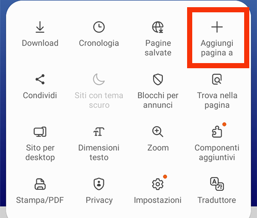 e clicca sul pulsante "Aggiungi pagina a Home"