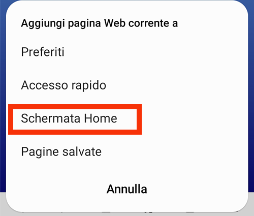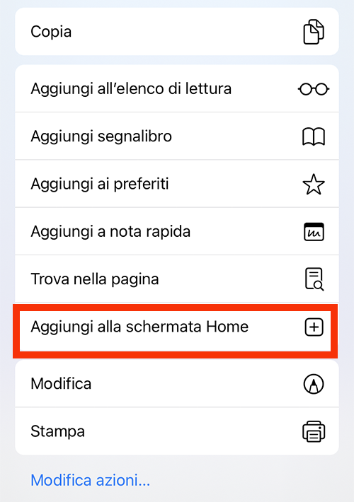 e scorri le opzioni fino a selezionare "Aggingi alla schermata Home"